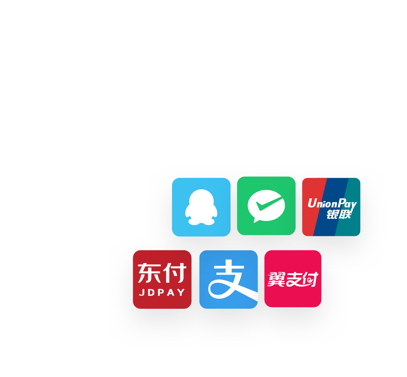 支持微信、支付宝、QQ钱包、东付、银联、翼支付等支付方式